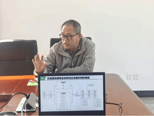 座谈会上,企业负责人对学院专家一行表示热烈欢迎。双方围绕生猪养殖领域关键技术与产业发展需求开展了深入交流。首先,天津农学院专家团队结合行业最新动态、科研成果、生产实际,带来了一场高水平专题报告。杨升以《影响猪常温精液质量表观因素分析》为题,从实际生产应用角度系统解析了影响种猪繁殖性能的关键因素;张建斌围绕《乳酸菌发酵饲料的营养价值评定及其对猪生长性能及肠道健康的影响》,为提升饲料利用效率和肠道健康提供了重要技术路径;蒲蕾在《从遗传潜力到生产效益:种猪选育关键技术应用》中,重点阐述了种猪选育关键技术在生产效益转化中的实践价值;孙英峰讲授了《猪病流行新趋势》,深入分析了当前疫病防控面临的新形势,并提出系统性防控建议。然后,项目负责人金红岩对当前公司科技创新工作进行了系统汇报;生产技术总监宁海林介绍了当前生产情况,双方围绕繁殖效率、疾病防控、营养调控、育种优化等主题进行了深入探讨。