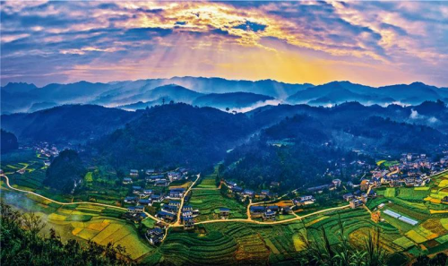 福建省寿宁县下党乡地处大山深处,曾经是无公路、无自来水、无电灯照明、无财政收入、无政府办公场所的“五无乡镇”。习近平总书记在福建工作期间曾“三进下党”,调研指导扶贫工作。经过30年的不懈奋斗,下党乡成功脱贫,发生历史性巨变。图为从空中鸟瞰下党乡下党村(2019年8月8日无人机拍摄)。新华社记者 林善传/摄